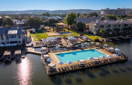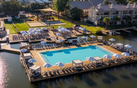 Experience the only floating pool in North America, set on the edge of Lake LBJ at our Waterfront Beach & Marina. Relax on a queen-size day bed with sunshade, plus enjoy a cooler with four bottles of water and a welcome fruit platter for 2 to 4 guests. A dedicated food and beverage server offers special menu selections from Waterfront Bar & Grill for effortless lakeside lounging.